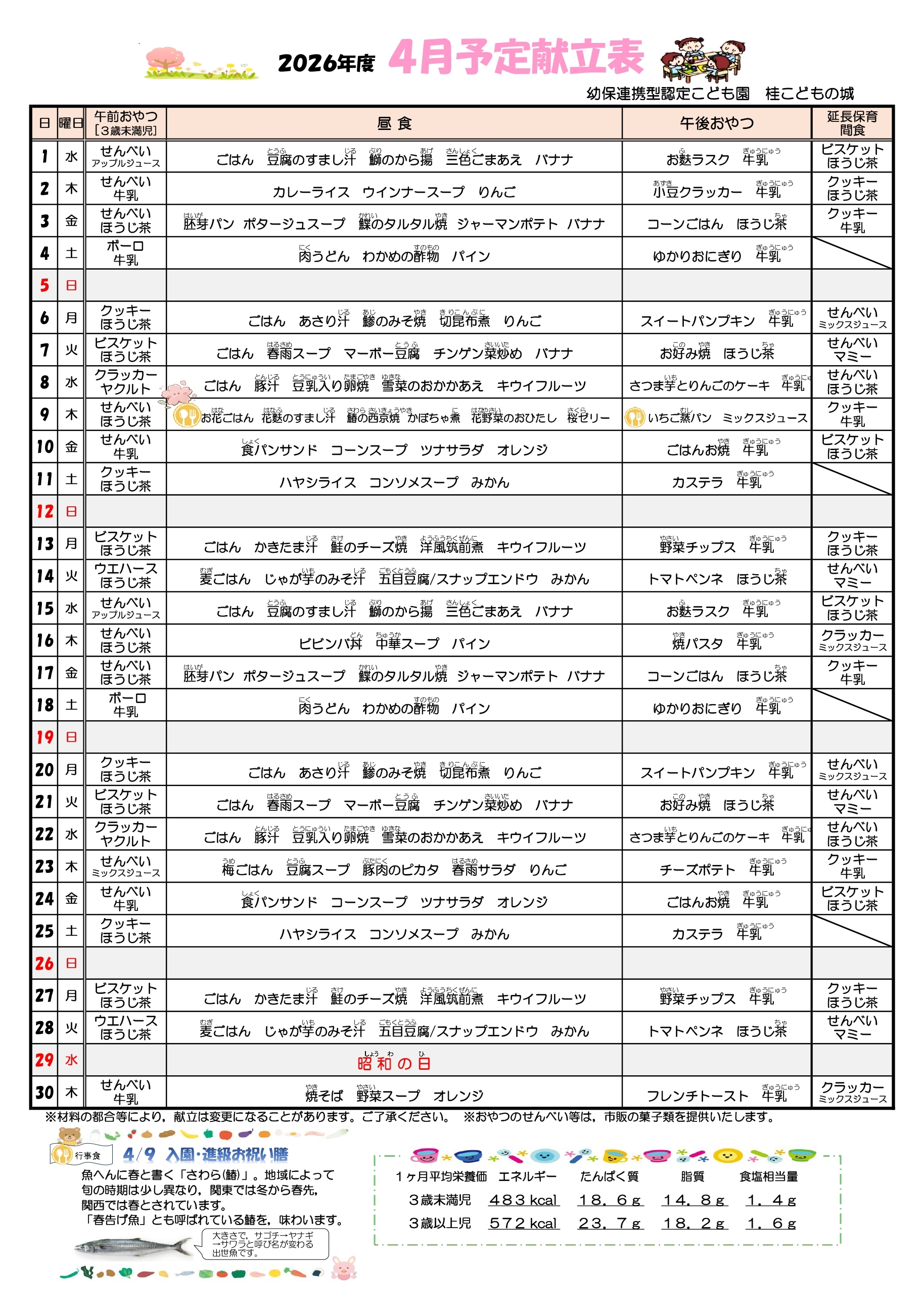食育だより/今月の献立表